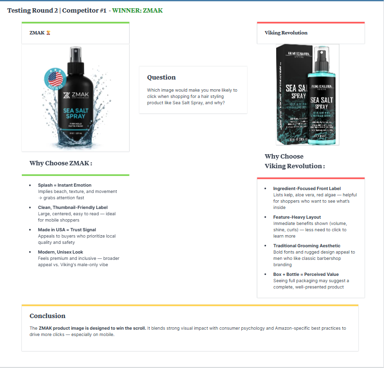 But performance isn’t about what looks best to you. It’s about what works for your customer. That’s why Amazon main image split testing is a key part of our creative workflow..